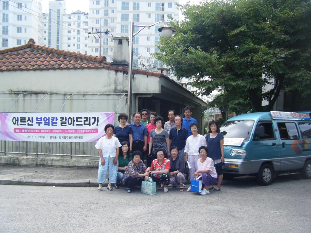 평거동주민자치위원회(위원장: 최진환)와 평거동주민센터(동장: 이상근)에서는 8.29(월) 10시부터 관내 저소득 어르신이 많은 5개 경로당(평거주공1차, 새터, 신안주공2-1차, 2-2차, 신안주공3차 경로당)을 방문하여 추석맞이 어르신 칼갈아드리기 행사를 가졌다.
