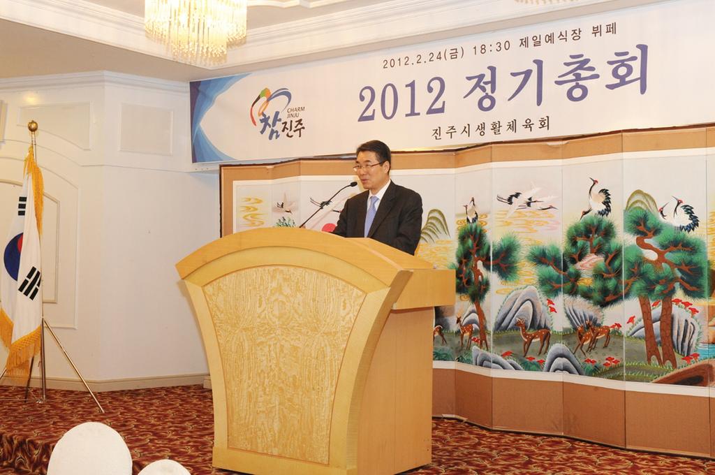 이번 정기총회는 2011년 주요 사업 추진결과 보고에 이어 2011년도 세입세출 결산, 2012년도 세입세출 예산안, 요가, 바둑, 스키 등 3개 신규 회원단체 가입 승인 등 안건 심의와 함께 제8대 진주시생활체육회 회장 및 감사를 선출했다.