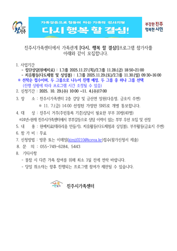 [진주시가족센터] 가족관계사업 「다시, 행복 할 결심」참여자 모집