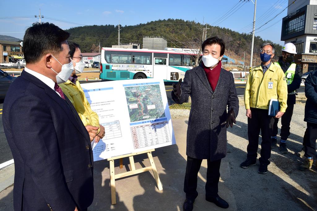 조규일 진주시장은 29일 오전 11시 말티고개~장재 간 도로 확포장공사 현장을 방문해 공사 관계자를 격려하고, 신동삼거리~하촌교차로 구간 왕복 4차로 임시 개통 상황을 점검했다.