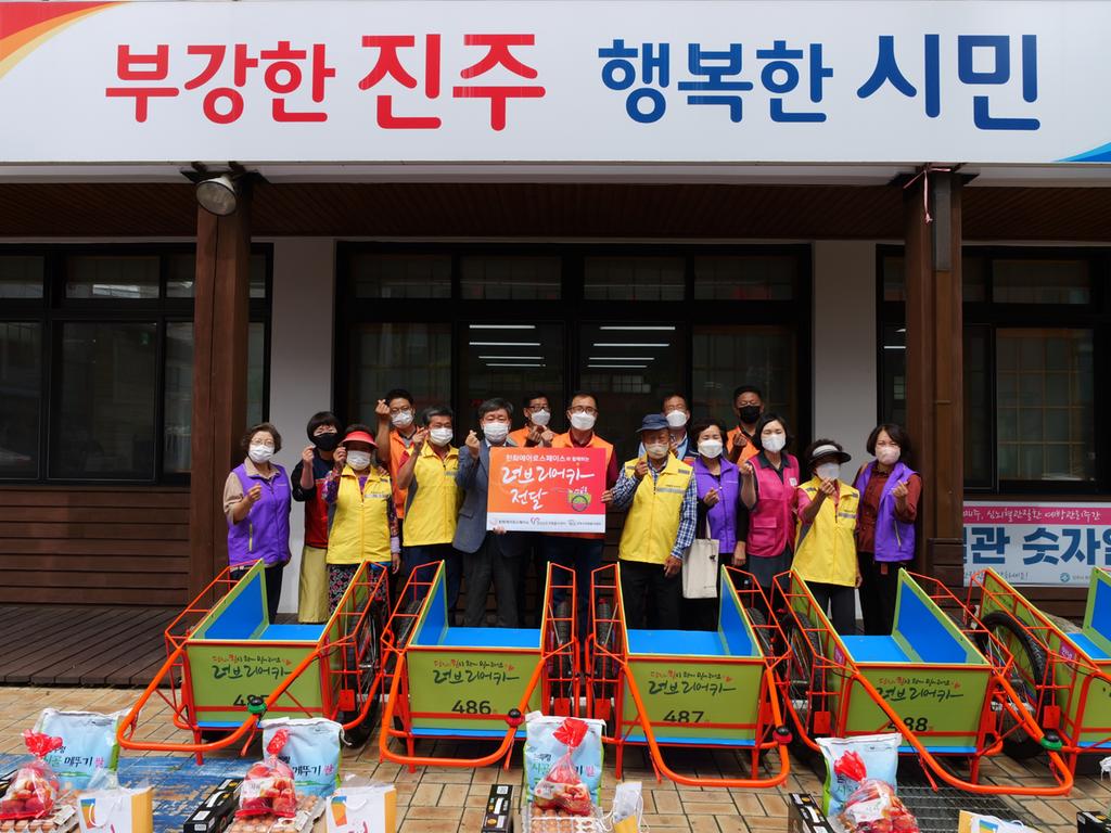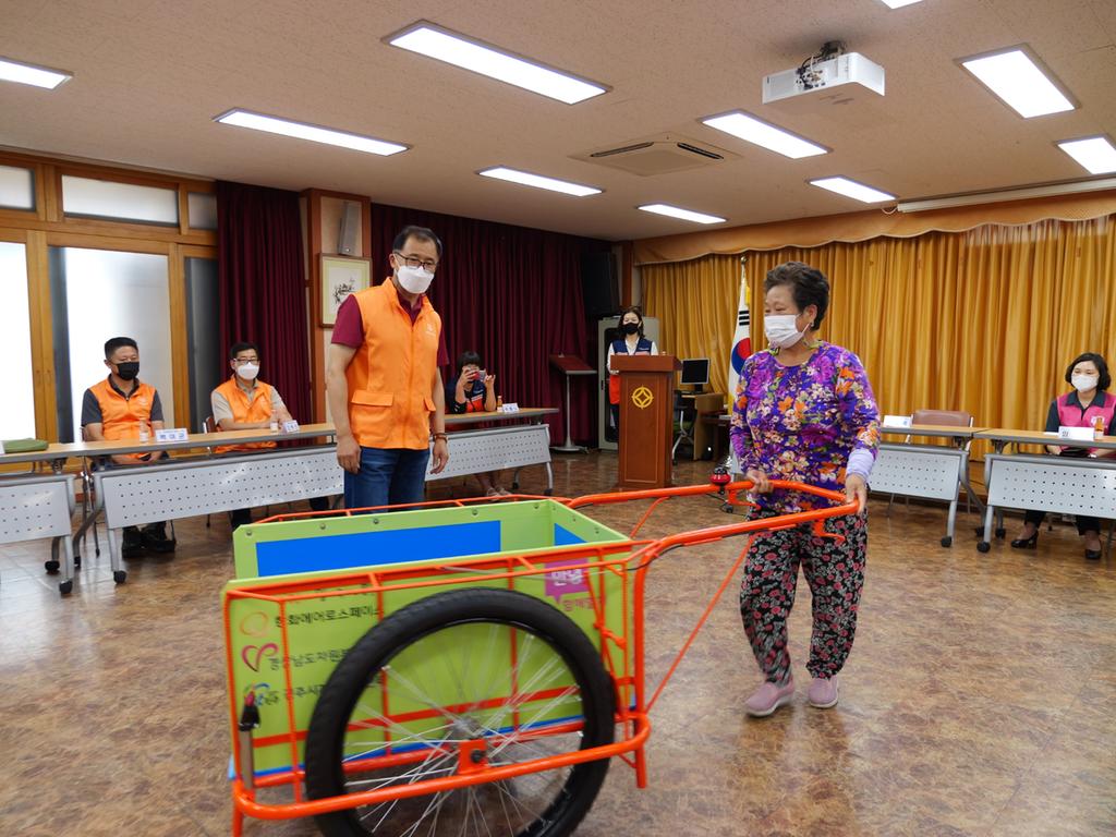 진주시자원봉사센터, 폐자원 수집 어르신에‘사랑의 리어카’전달