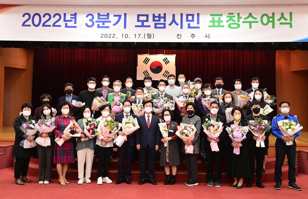 진주시는 17일 시청 시민홀에서 시정 발전을 위해 기여한 유공자들이 참석한 가운데 3분기 모범시민 표창식을 가졌다.