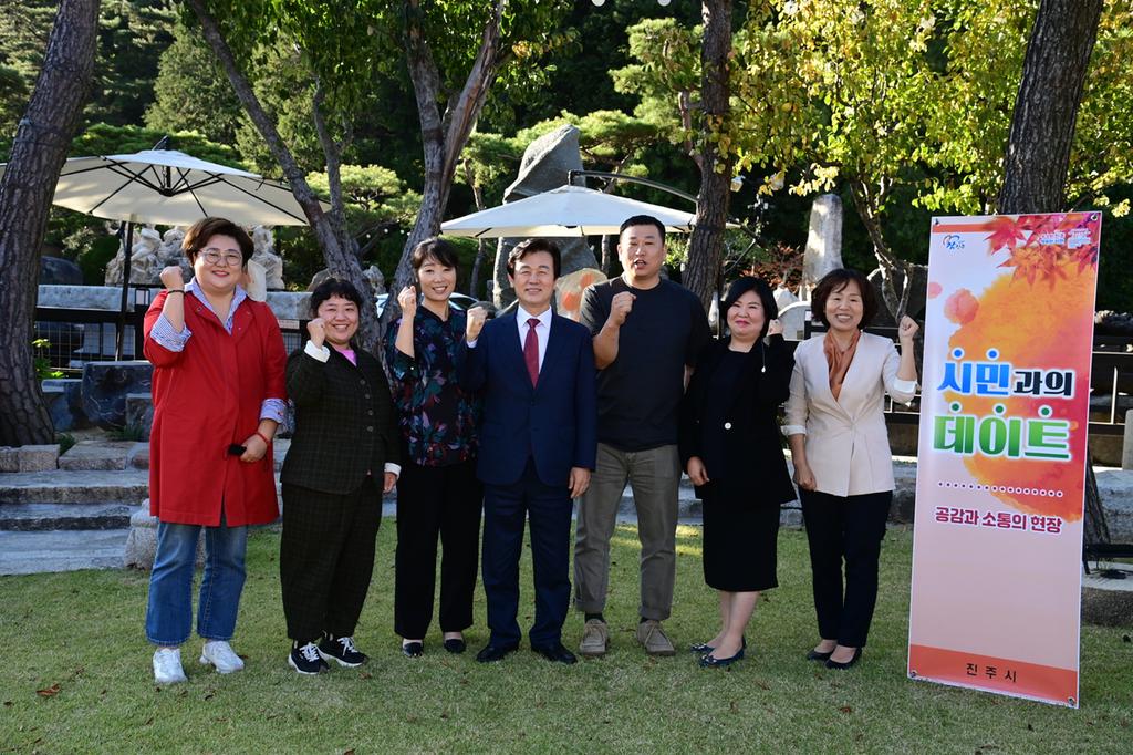 조규일 진주시장은 17일 문산읍 소재 한 카페에서 ‘진주바느질협동조합’ 회원들과 10월 ‘시민과의 데이트’시간을 가졌다.
