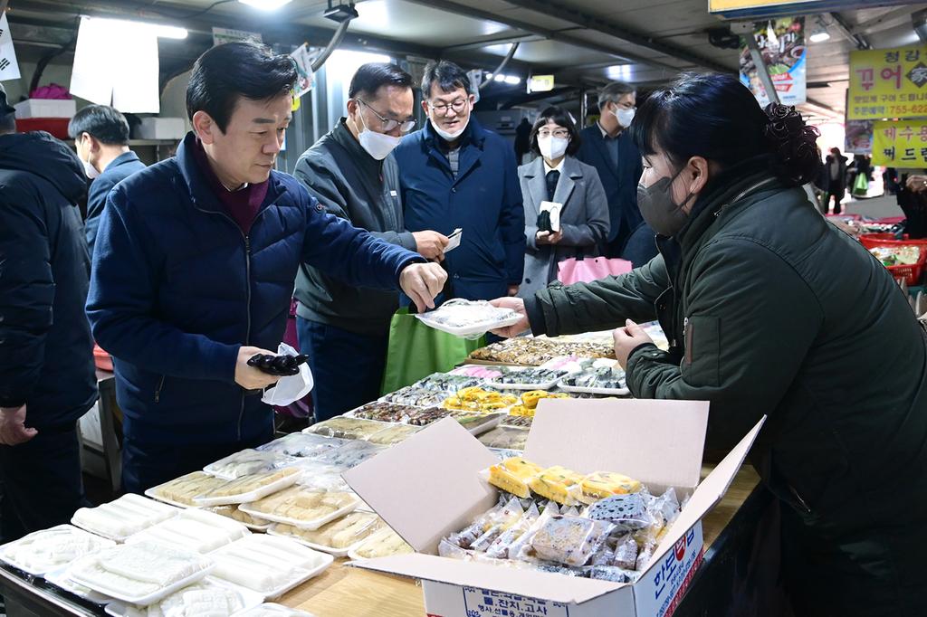 이날 참가한 공무원들은 설 명절을 맞아 시민들에게 전통시장 이용을 홍보하고 고물가와 경기 악화로 힘든 전통시장 상인들에게 힘을 보태기 위해 미리 준비한 온누리상품권을 이용하여 설맞이 제수용품 등을 구매하고 상인 및 시민들과 소통하는 시간을 가졌다.