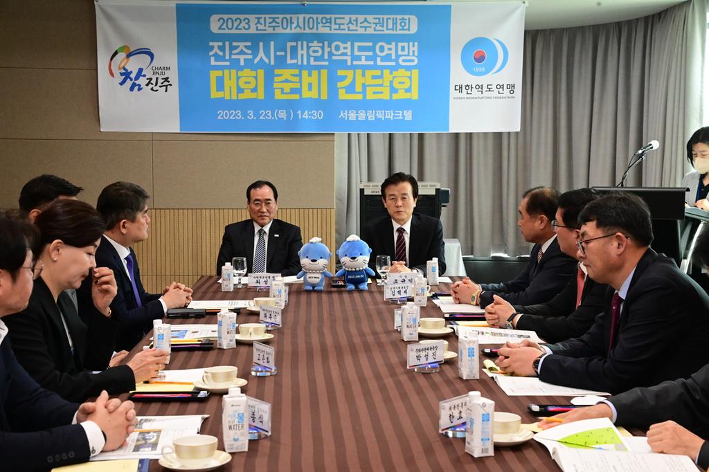 3월 23일에는 대한역도연맹과 간담회를 개최하여 대회 추진사항 및 운영에 관한 심도 있는 논의를 통해 진주에서 개최되는 첫 국제대회지만 완벽한 준비가 이루어질 수 있도록 하였다.