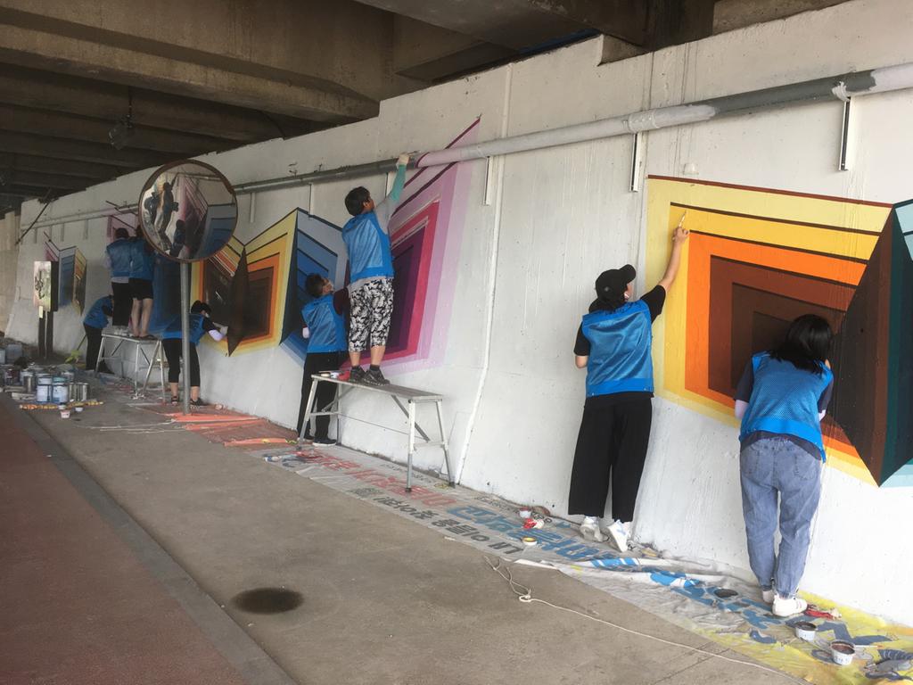 2013년부터 시작된 공공디자인 자율봉사단은 지난 10년간 200여 명 봉사단원이 참여해 ‘정촌 뿌리산단 생태교량 하부 디자인’, ‘구)망경 지하차도 측벽 디자인 벽화’ 등 총 10여 곳에 공공디자인을 접목하여 밝고 아름다운 공간으로 탄생시켰다.