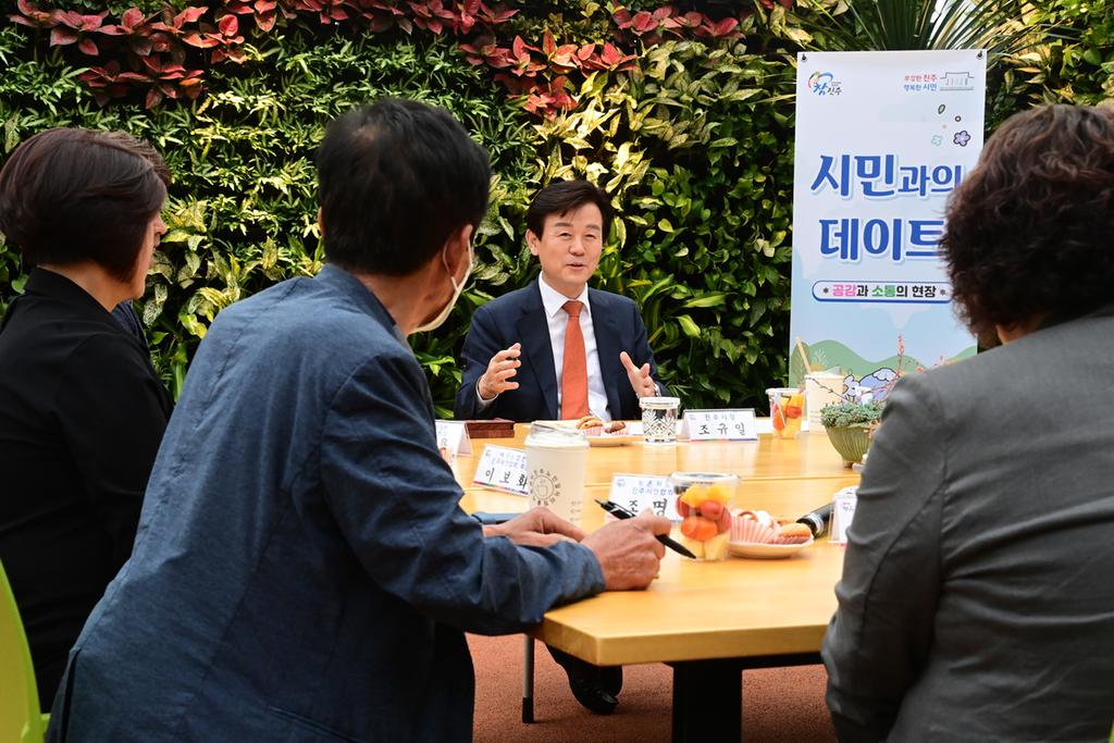 조규일 진주시장은 18일 진주시 농업기술센터 원예체험온실에서 농업인 단체장 등 10여 명과 5월 시민과의 데이트 시간을 가졌다.