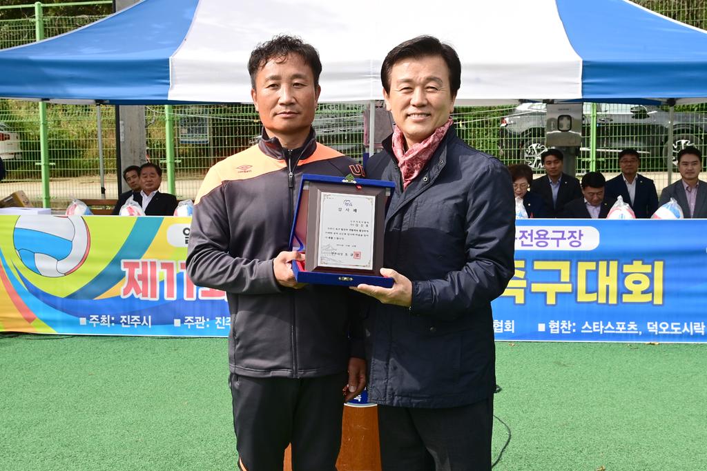 진주시가 주최하고 진주시족구협회(회장 문태식)가 주관한 ‘제11회 진주시장배 족구대회’는 모덕체육공원 족구장에서 400여 명의 동호인들이 참가해 서로의 실력을 겨뤘다. 개회식에서는 진주시 족구 발전과 생활체육 활성화에 기여한 진주시족구협회 김진호 이사에게 진주시장 공로패를 수여했다.