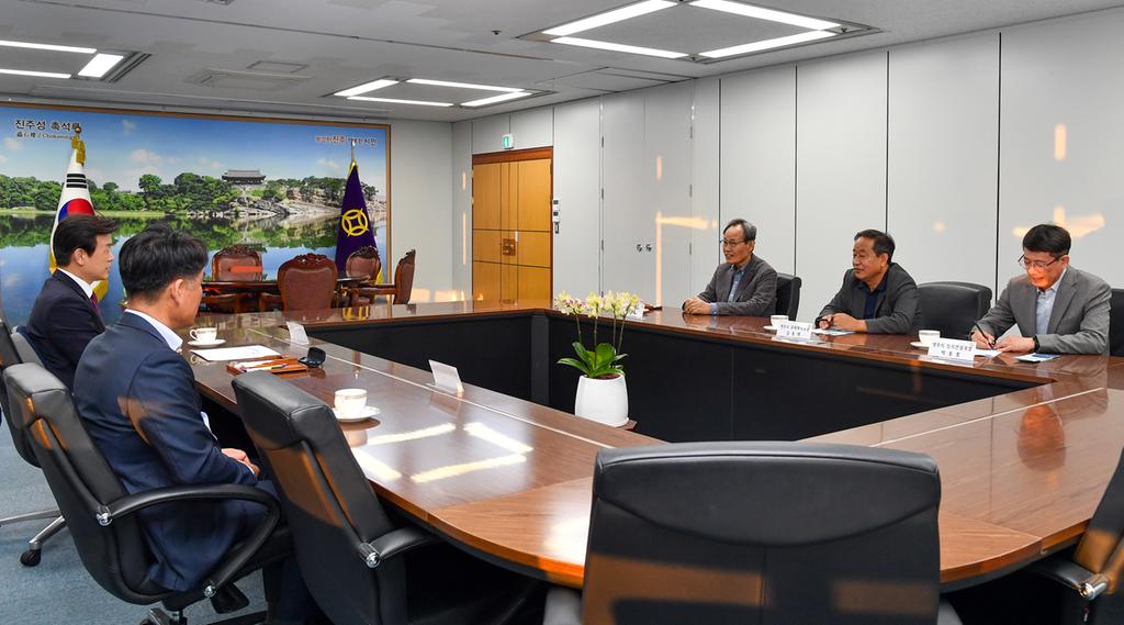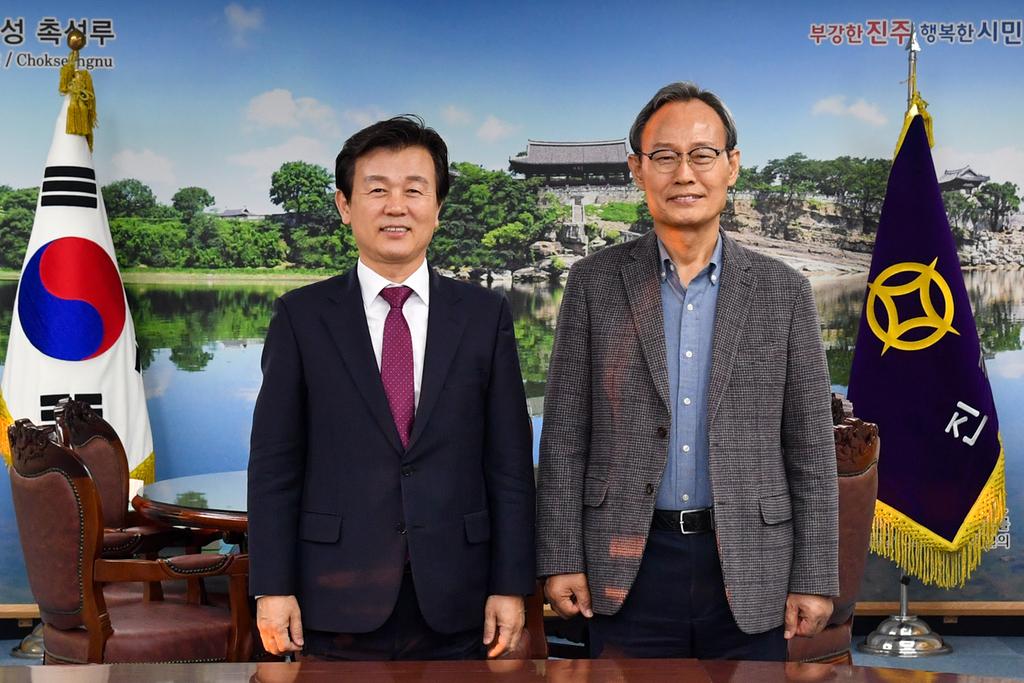 영주시장을 맞이한 조규일 진주시장은 “동주도시인 영주시와는 특별한 인연이 있다”며 “2018년 12월 공공건축가 제도를 국내에서 처음으로 도입한 영주시를 방문하여 1개월 후 2019년 1월부터 경남 최초로 총괄ㆍ공공건축가 제도를 진주시에 도입하였고, 현재 우리 시는 공공건축가 제도를 확대 시행하여 공공사업 추진 전 과정에 민간전문가가 참여하는 등 공공건축의 품격을 높이는 괄목할만한 성과를 이뤘다”고 말했다.