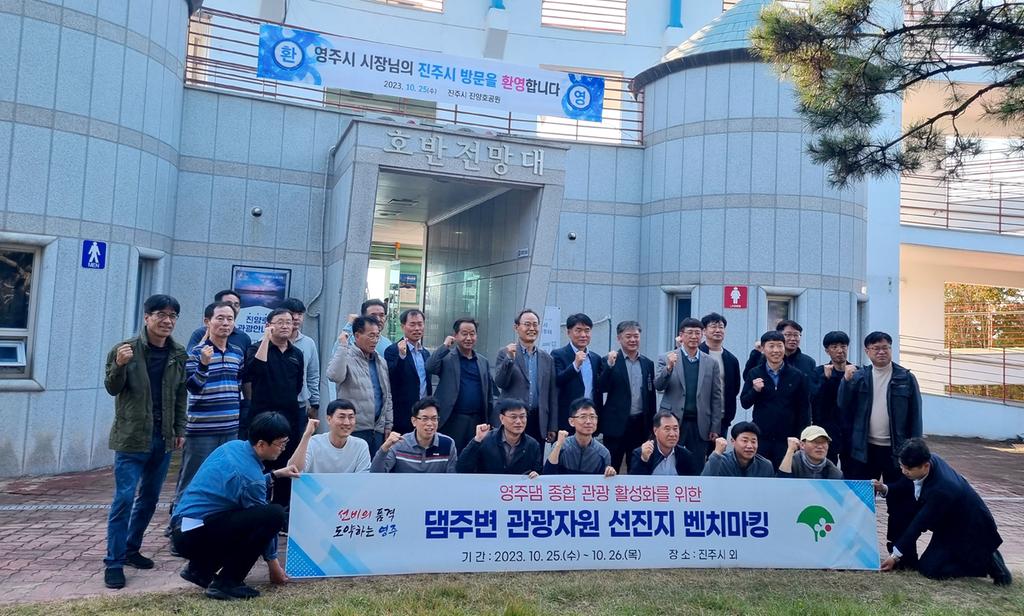 진주시는 25일 박남서 영주시장을 비롯하여 기획예산실, 미래전략실, 공원관리과 등 다양한 분야의 관련부서 공무원 26명이 댐 주변 관광자원 선진지 벤치마킹을 위하여 진주시를 방문했다고 밝혔다.