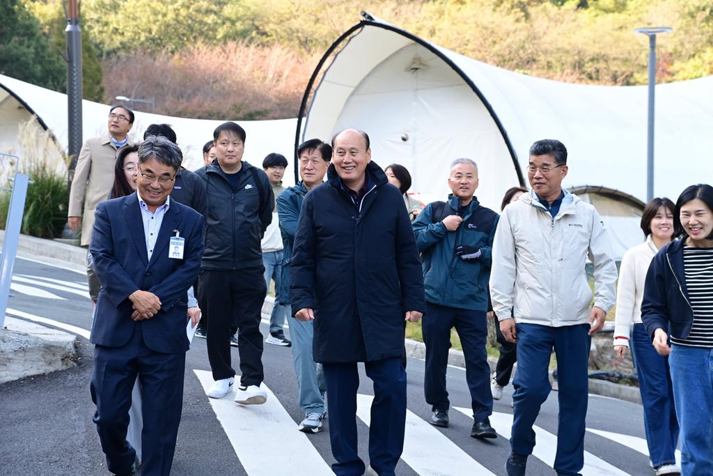 -‘월아산 숲속의 진주’·‘물빛나루쉼터’등 둘러보고 조규일 시장과 환담 나눠 -