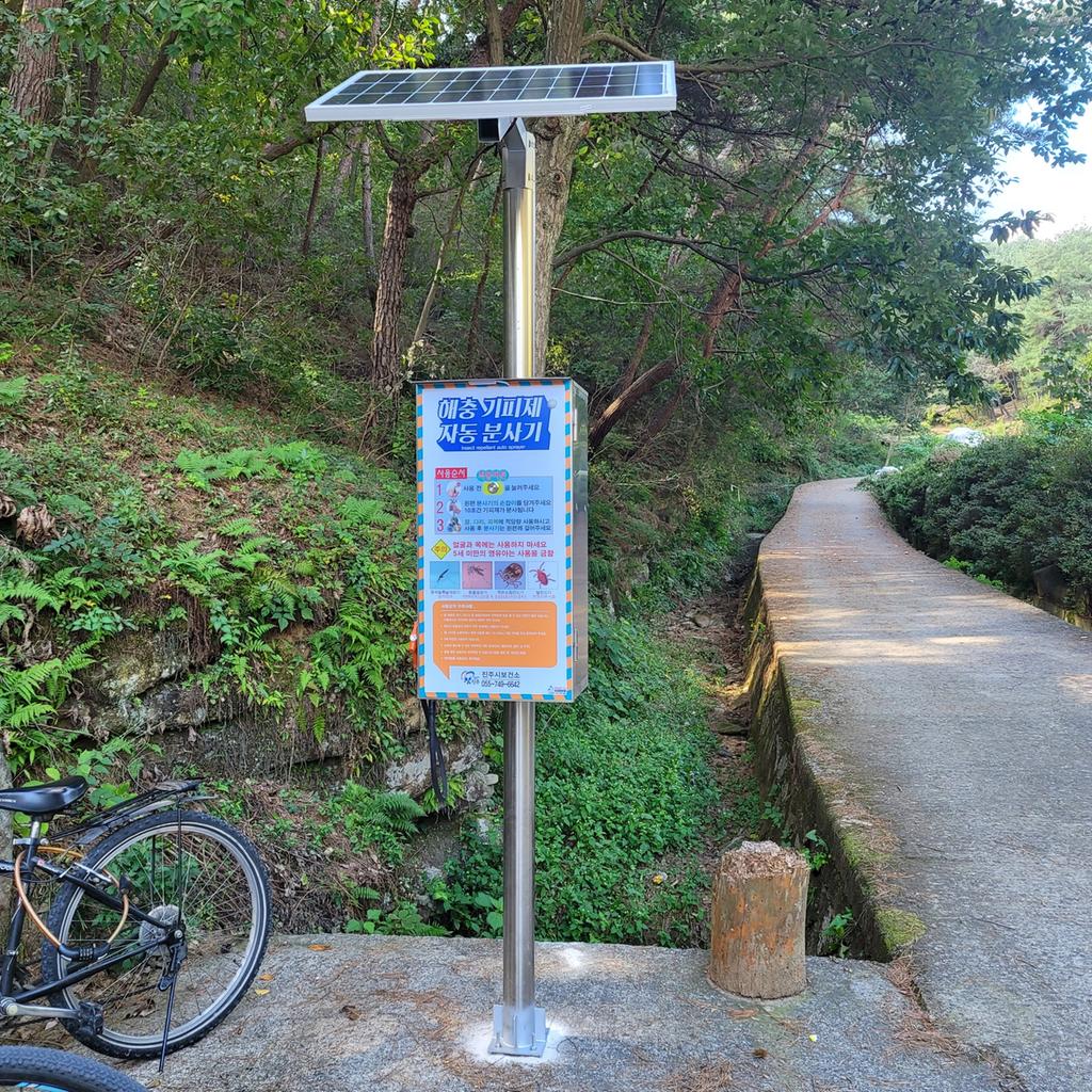 해충유인살충기는 해충이 좋아하는 빛의 파장을 이용해 모기 등 해충을 유인・퇴치하는 방제 장비로 남강변 및 해충발생 다발지역 등에 372개가 설치·운영되고 있다. 기피제 분무시설은 야외 활동 중 진드기와 모기 등 접근을 막기 위해 시민들이 직접 옷 등에 기피제를 분사할 수 있는 장비로 비봉산 등 등산로와 공원 35개소에 운영중이다.