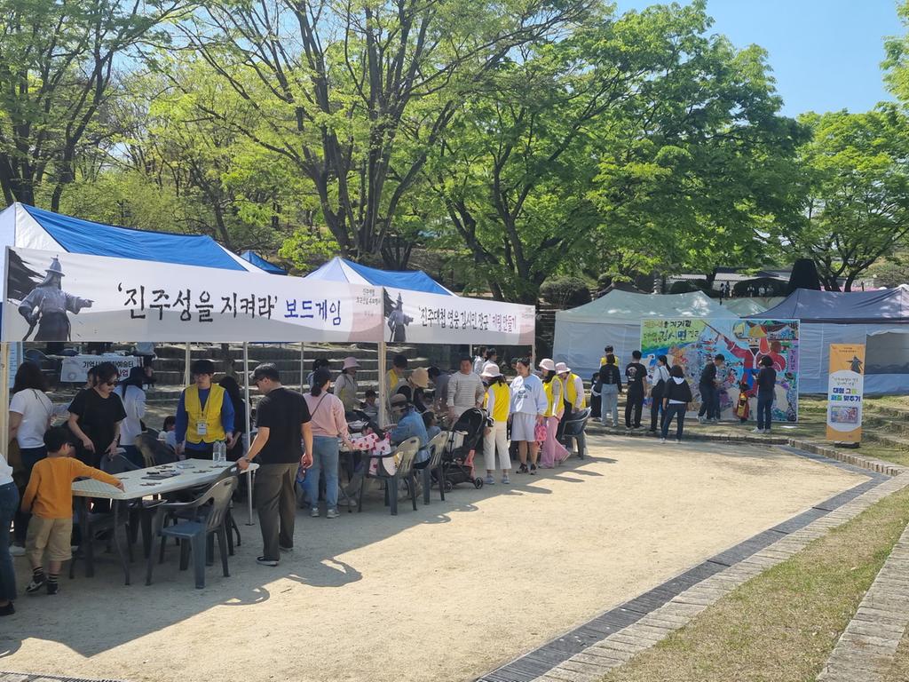 추모행사는 ‘진주대첩 영웅들과 남명 마당극’ 공연과 ‘진주대첩을 눈앞에 그리다 VR 역사체험’, ‘진주성을 지켜라 보드게임’ 부스를 운영하여 진주대첩의 역사적 의미를 되새기며 호국선열의 충의를 기리는 시간을 가졌다.