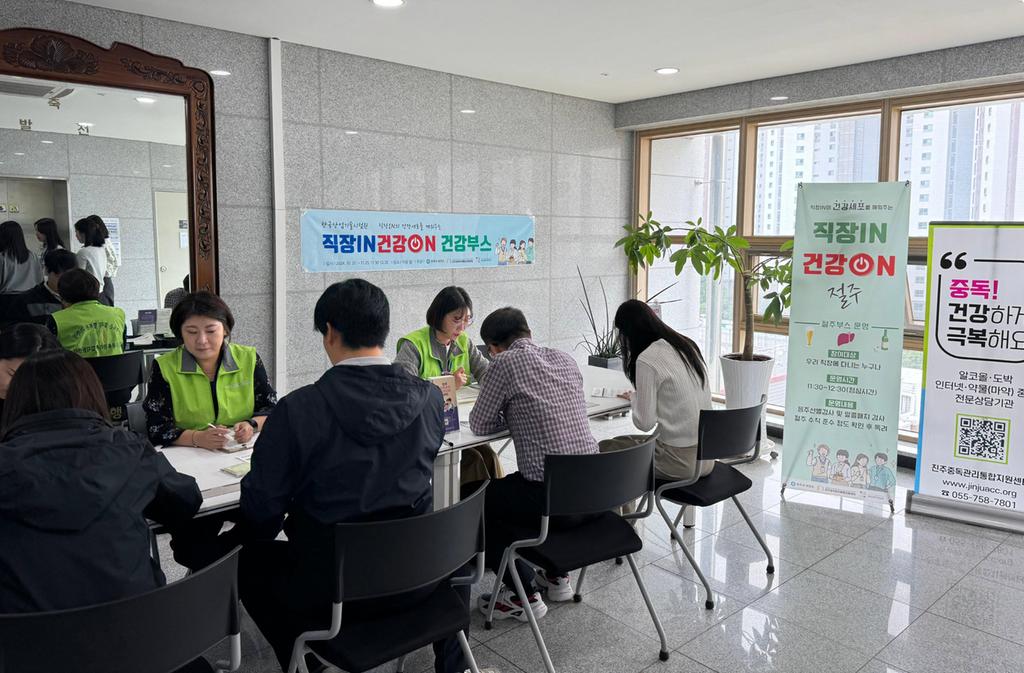 진주시보건소는 한국산업기술시험원, 아미코젠, 하이트진로산업 등 3개 사업장의 안전보건관리자들을 건강 리더로 교육하고, 6주 동안 매주 1회 전문 운동 강사를 파견하여 업무공간 내에서 신체활동을 실시하며, 매주 1회 심뇌혈관질환 예방관리, 금연, 절주 등 다양한 교육 프로그램을 제공한다.