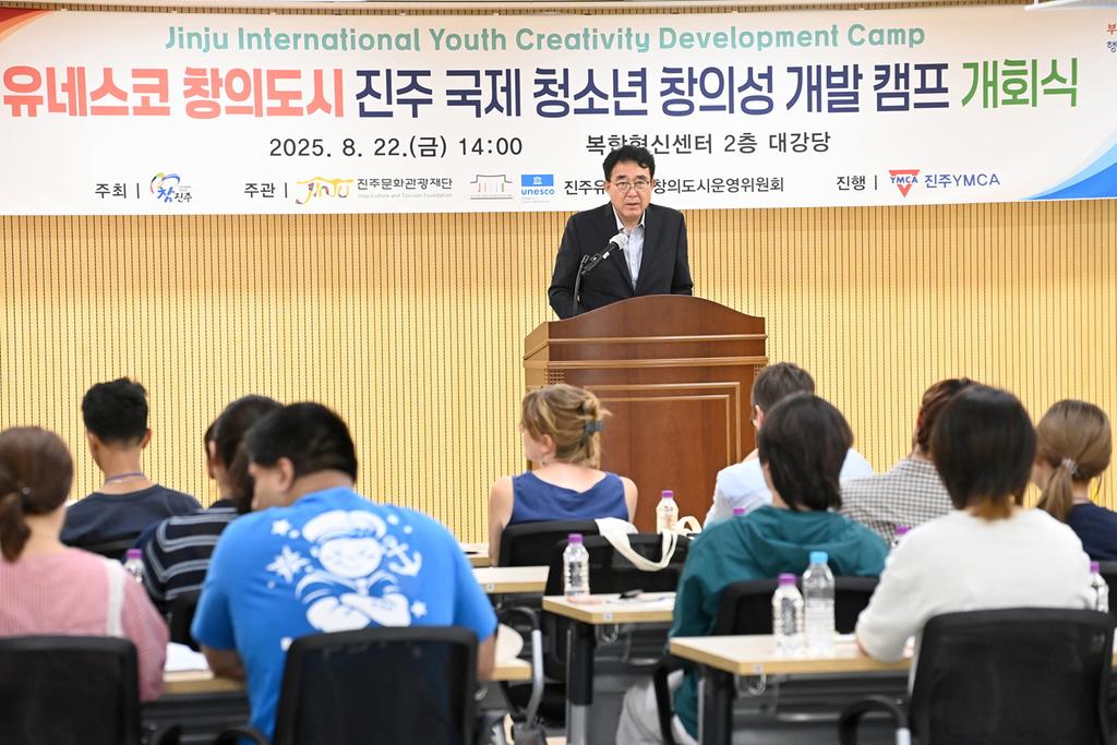 캠프 첫날인 지난 22일 경남진주혁신도시 복합혁신센터 2층 대강당에서 열린 개회식에는 진주시 부시장, 국내외 참여 학생, 초청강사, 진주시 유네스코 창의도시 운영위원 등이 참석했다.