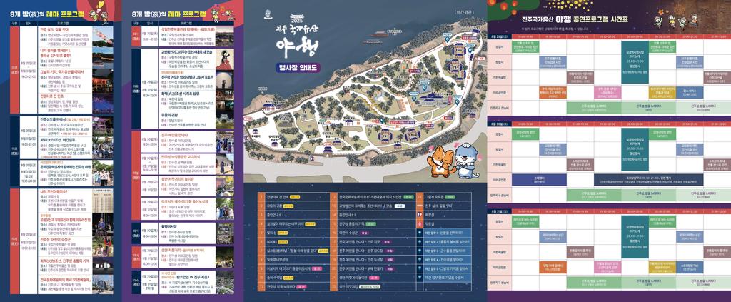 또한 ▲야화(夜畵)-교방예인이 그려주는 조선시대의 내 모습, 진주성 어두운 밤의 여행자-그림자 포토존, 화력 조선 시리즈 상영, 유등의 귀환 ▲야설(夜說)-진주 예인을 만나다, 진주성 수성중군영 교대의식, 성안 저잣거리의 놀이판, 이보시게 내 이야기 쫌 들어보시게 ▲야식(夜食)-올빰 야시장 ▲야시(夜市)-성안 저잣거리 플리마켓 ▲야숙(夜宿)-ESG주둔지-탄소없는 IN 진주 시즌3 등 시민과 관광객들이 차별화된 국가유산을 탐방하고 체험할 수 있도록 기획한 것이 특징이다.