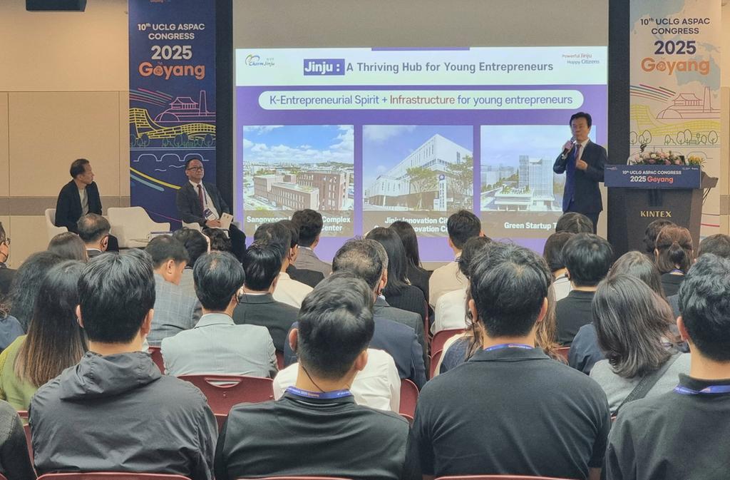 진주시는 조규일 시장이 이달 24일부터 26일까지 킨텍스에서 열리고 있는 ‘2025 제10차 세계지방정부연합 아시아ㆍ태평양지부(UCLG ASPAC) 고양 총회’의 서브포럼에 공식 초청연사로 참석해 25일‘청년 리더십’을 주제로 발표했다고 밝혔다.