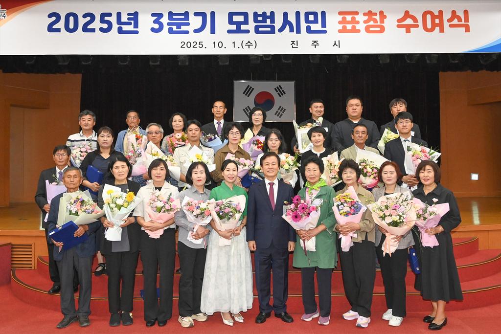 진주시는 1일 지역사회 발전과 봉사활동을 몸소 실천하며 귀감이 된 모범시민 81명을 대상으로 ‘2025년 3분기 모범시민 표창 수여식’을 개최했다.