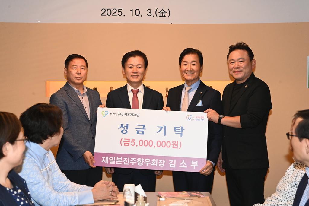 지난 3일에는‘재일본진주향우회’가 방문해 조규일 시장을 비롯한 진주시 관계자들과 김소부 회장을 포함한 향우회원들이 우호를 다지는 교류의 시간을 가졌다. 특히 이날 향우회에서 지역사회 발전과 복지향상을 위한 성금 500만원을 진주시복지재단에 기탁하며 고향에 대한 깊은 애정을 전하기도 했다.