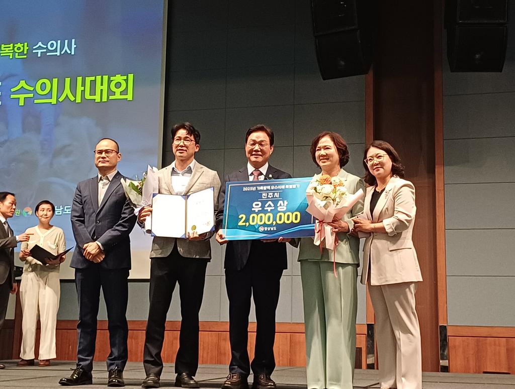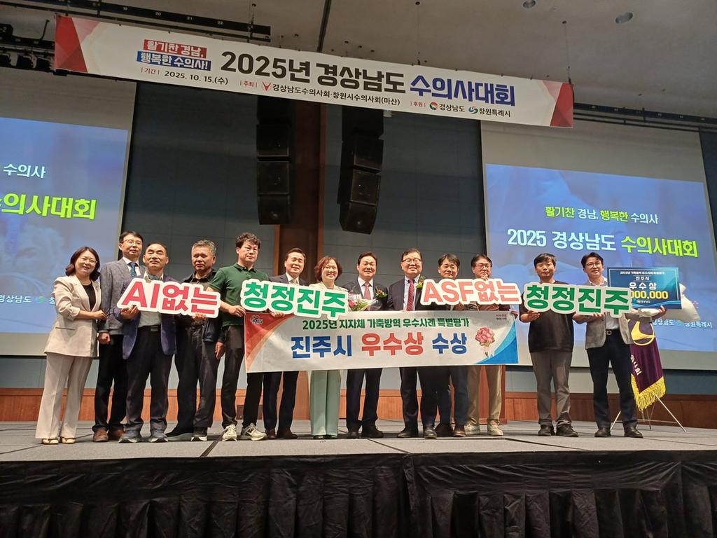 진주시가 지난 15일 창원컨벤션센터에서 개최된 ‘2025년 경상남도 수의사대회’에서 ‘가축방역 우수 기관상’을 수상했다. 진주시는 지난해 최우수 기관 선정에 이어 올해는 우수기관으로 선정되어 가축방역 분야에서 경남도내 최고 수준임을 증명했다.