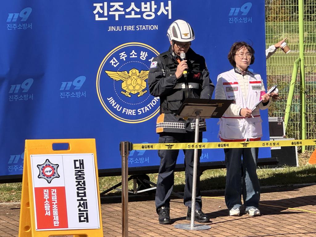이날 훈련은 진주시·국토안전관리원·진주소방서 공동주관으로 실시했으며, 진주소방서 긴급구조 종합훈련과 동시에 실시해 대응태세를 점검했다. 이 밖에도 진주경찰서, 육군 제8962부대 1대대를 비롯해 자율방재단, 여성민방위기동대 등 총 19개 기관·단체, 500여 명이 참여하고 소방차와 구급차 등 차량 51대, 장비 30종이 투입됐다.