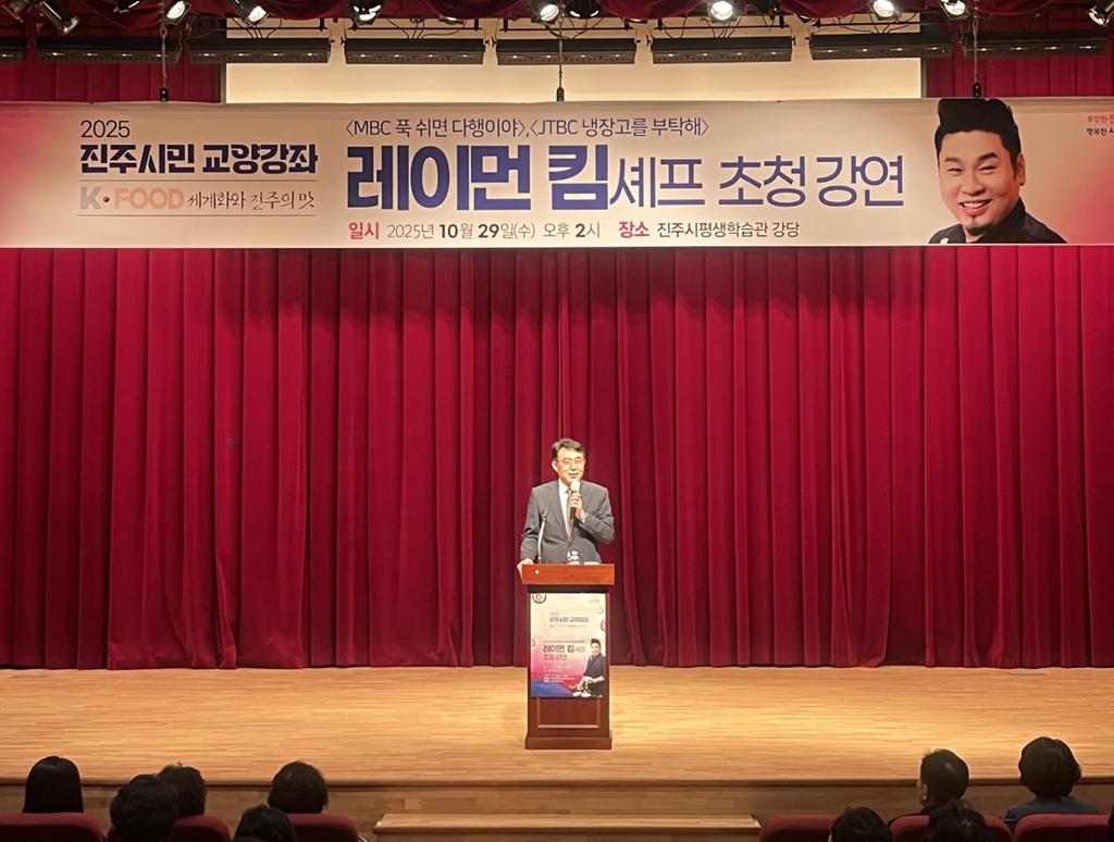 이날 강좌에는 500여 명의 시민이 참석해 성황을 이룬 가운데 ‘레이먼 킴’ 셰프가 ‘K-푸드 세계화와 진주의 맛’을 주제로 강연을 펼쳤다. 특히 K-푸드 열풍 속에서 진주의 음식문화가 지닌 고유한 가치와 세계 시장에서의 잠재력에 대해 설명하며 큰 호응을 얻었다.