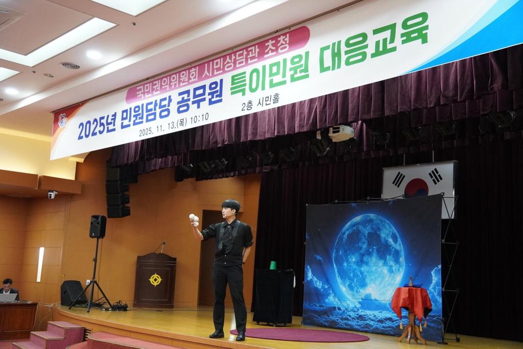 또한 교육에 앞서 ‘스토리텔링 마술공연’이 진행돼 민원업무로 인한 피로와 스트레스를 해소할 수 있는 휴식의 시간을 제공함은 물론 동료 간의 소통과 공감의 기회를 마련해 큰 호응을 이끌어냈다.