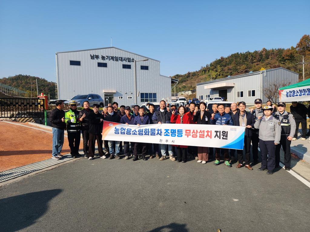 ‘한국교통안전공단’에서는 조명등 지원과 함께 반사스티커, 안전조끼 등 각종 안전용품을 배부하고, ‘진주경찰서’는 경찰관을 파견해 현장에서 농업인들을 대상으로 교통안전 지도를 실시하며 사고 예방 캠페인을 펼쳤다. 조명등 설치는 ‘㈜에스라이팅’ 업체에서 기술진을 동원해 신속하고 안전하게 작업을 완료했다.