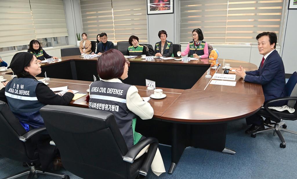 진주시 여성민방위기동대(대장 이정희)는 지난 11월 28일 진주시청에서 조규일 진주시장과 간담회를 개최하고, 올해 활동을 되돌아보며 내년도 재난대응 역량 및 지역사회 기여 확대방안을 논의하는 시간을 가졌다.