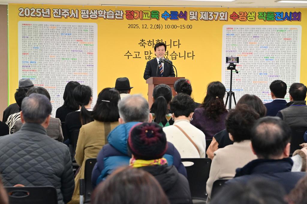 진주시는 2일 평생학습관 본관에서 수강생과 강사, 시민 등 400여 명이 참석한 가운데 ‘2025년 평생학습관 정기교육 수료식 및 제37회 수강생 작품발표회’를 개최했다.