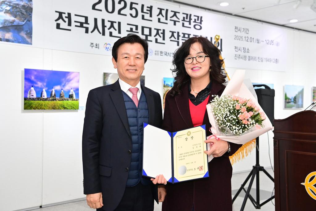 진주시가 주최하고 (사)한국사진작가협회 진주지부가 주관하는 ‘2025 진주관광 전국사진 공모전’ 시상식이 3일 진주시청 2층 ‘갤러리진심 1949’에서 개최됐다.