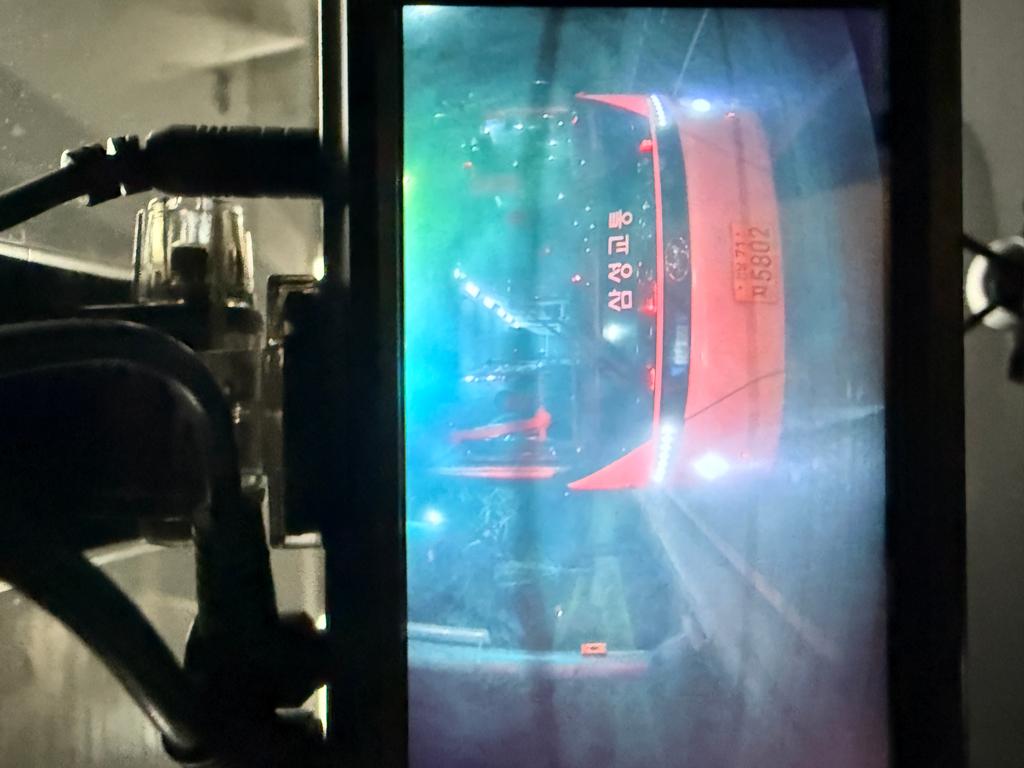 신호대기를 하는 중에 해당 버스가 뒤에 접근하여 클락션을 울렸습니다.