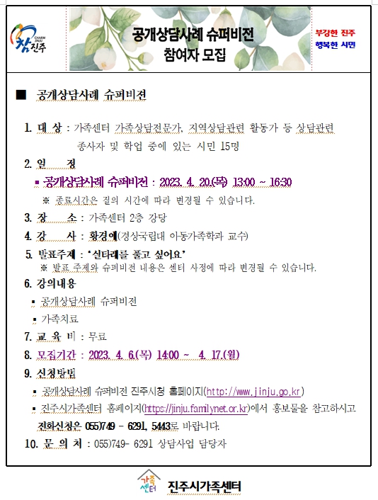 공개상담사례 슈퍼비전 : 2023. 4. 20.(목) 13:00 ~ 17:00
