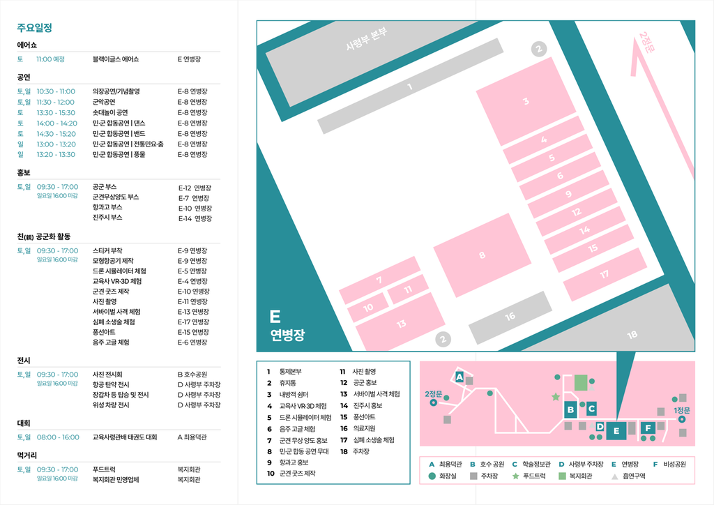 - 전시(09:30~17:00) : 사진, 항공탄약, 장갑차 등 탑승 및 전시