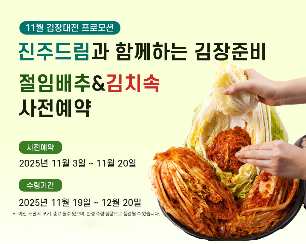 진주드림 쇼핑몰 10% 특별 할인 행사 및 김장철 특별기획전 안내