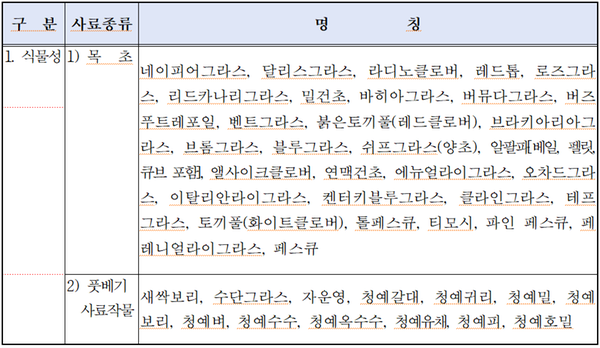 「사료 등의 기준 및 규격」(별표1)에 따른 목초, 풋베기 사료작물