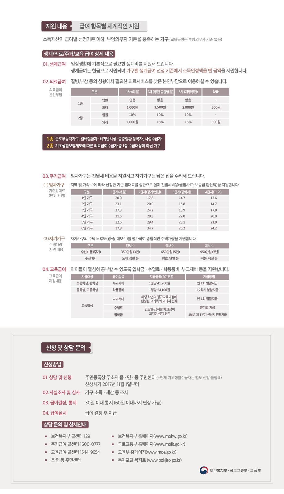 ❍ 지원대상 : 소득재산이 급여별 선정기준 이하, 부양의무자 기준을 충족하는 가구