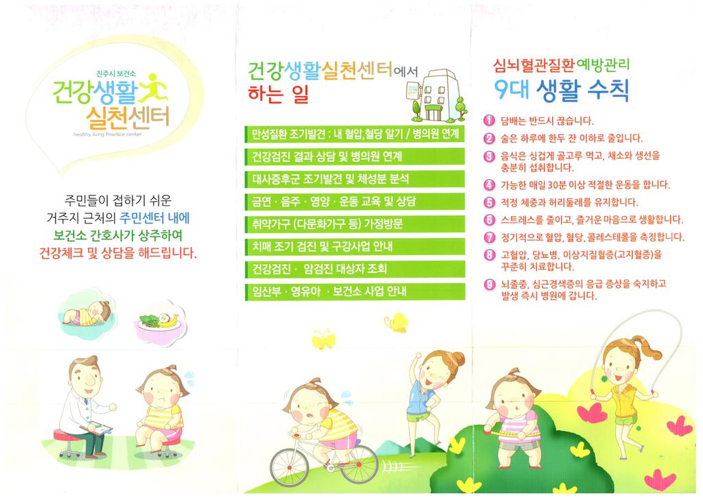 주민들이 접하기 쉬운 거주지 근처의 주민센터 내에 보건소 간호사가 상주하여 건강체크 및 상담을 해드립니다.