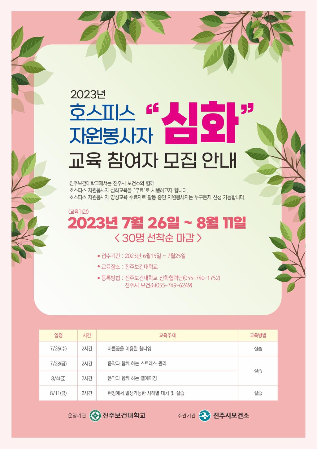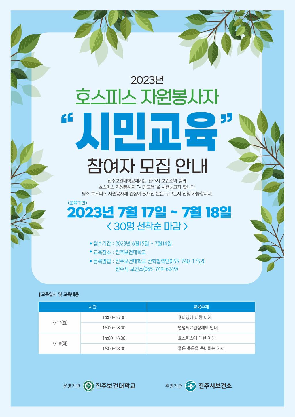 2023년 호스피스 자원봉사자 양성교육 참여자 모집 안내문입니다.
